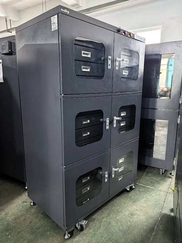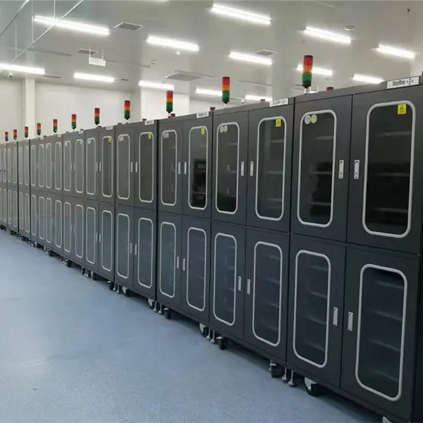 Gli armadi a prova di umidità NetDry sono progettati per conservare componenti elettronici, come PCB, PCBA, caricatori PCB, condensatori e resistori, ecc. In particolare, i pacchetti PCB che sono stati aperti ma non completamente utilizzati sulle linee di produzione SMT devono essere immediatamente collocati in un armadio a prova di umidità per preservarne l'integrità e prolungarne la durata di conservazione, gli armadi elettronici a secco NetDry seguono lo standard J-STD-033D, fornendo un ambiente a bassa umidità per salvaguardare i tuoi preziosi prodotti.