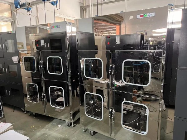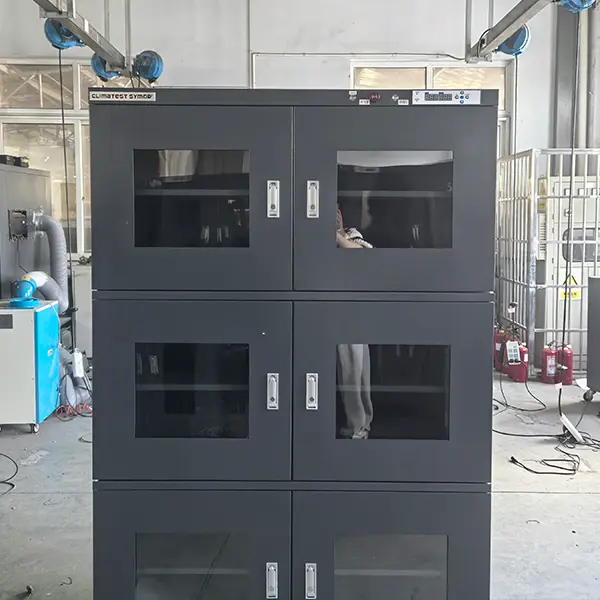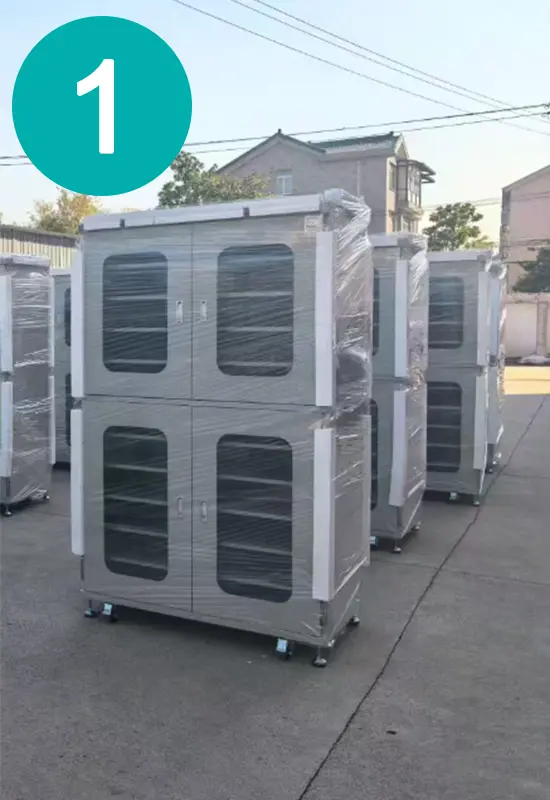 Per garantire che i nostri clienti ricevano armadi a prova di umidità il più rapidamente possibile, in genere produciamo in anticipo un gran numero di modelli standard per mantenere le scorte. Ciò ci consente di spedire gli ordini immediatamente dopo averli ricevuti, richiedendo solo la calibrazione e la pulizia finali prima della spedizione. Questo video presenta riprese reali del nostro workshop, riprese dal telefono del nostro staff.