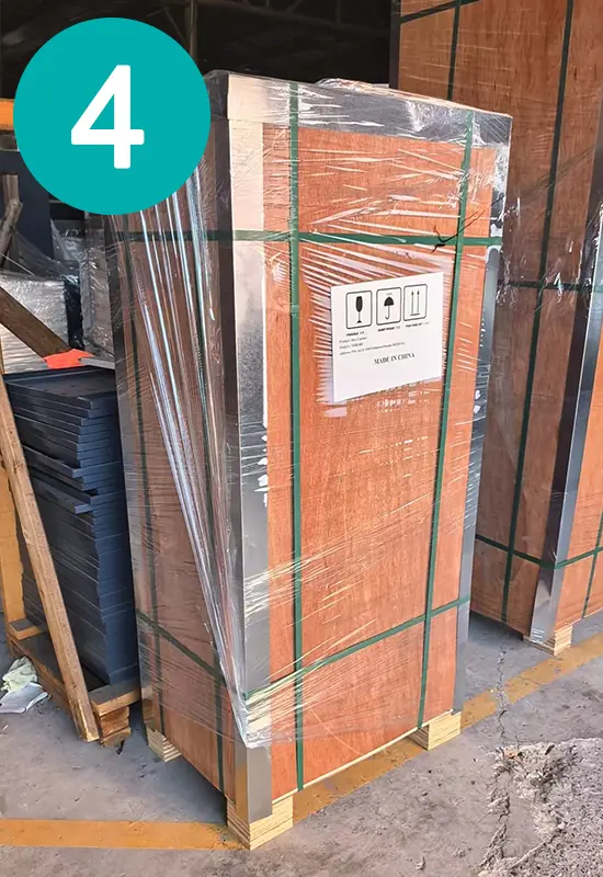 2° strato: plastica espansa avvolta agli angoli e piastra a nido d'ape su ciascun lato